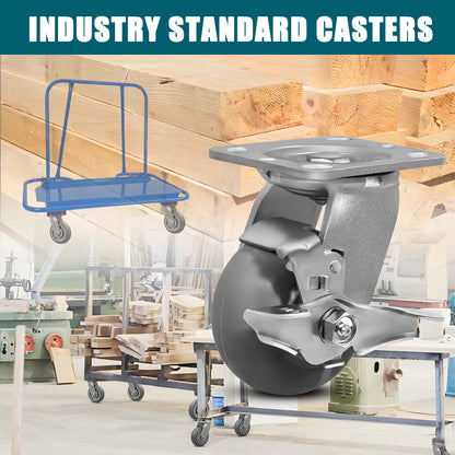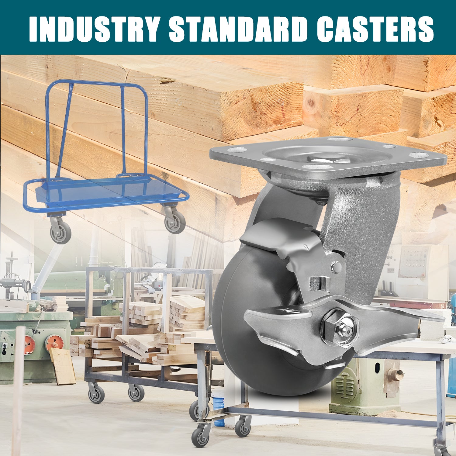 Heavy Duty Casters, Crowned Thermoplastic Rubber Wheels, Industrial Casters for Drywall/Sheetrock Carts & Dollies, Secure Maneuverability