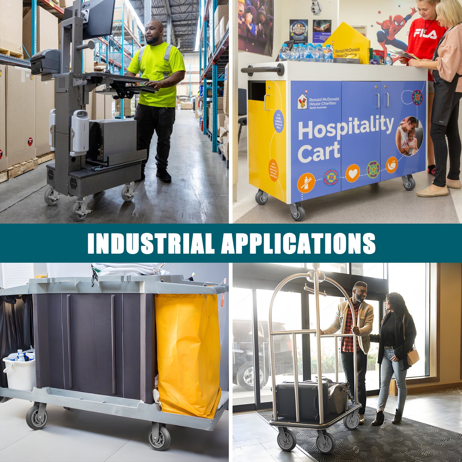 WIDELY USED:These wheels are ideal for industries like hotels, hospitals, and labs.These gray soft rubber wheels are non-marring, nonmarking, quiet, absorb shock, vibrations, and protect equipment and floors and many floor surfaces.