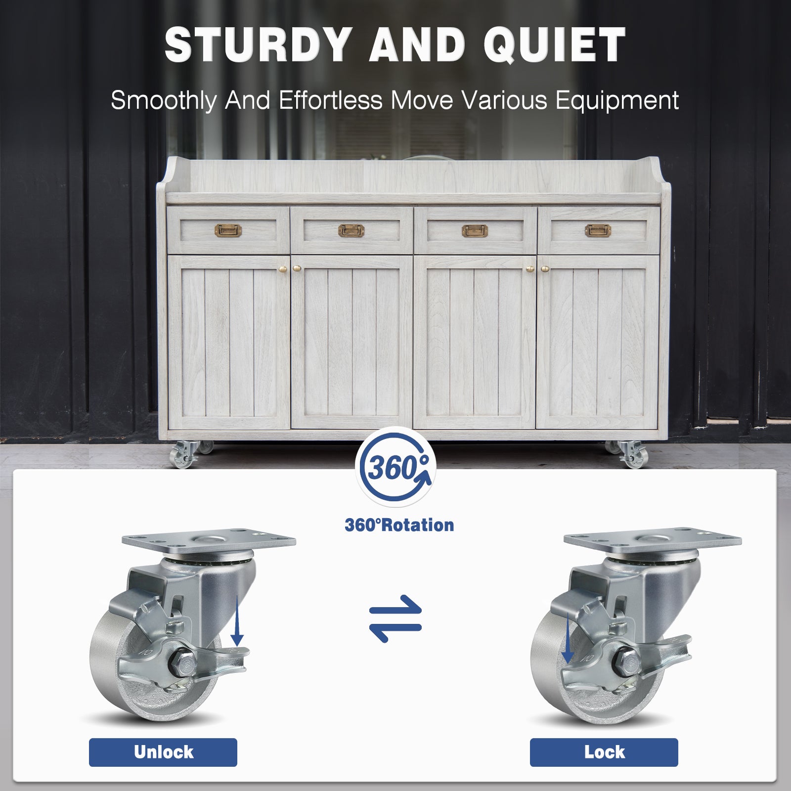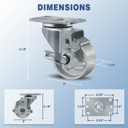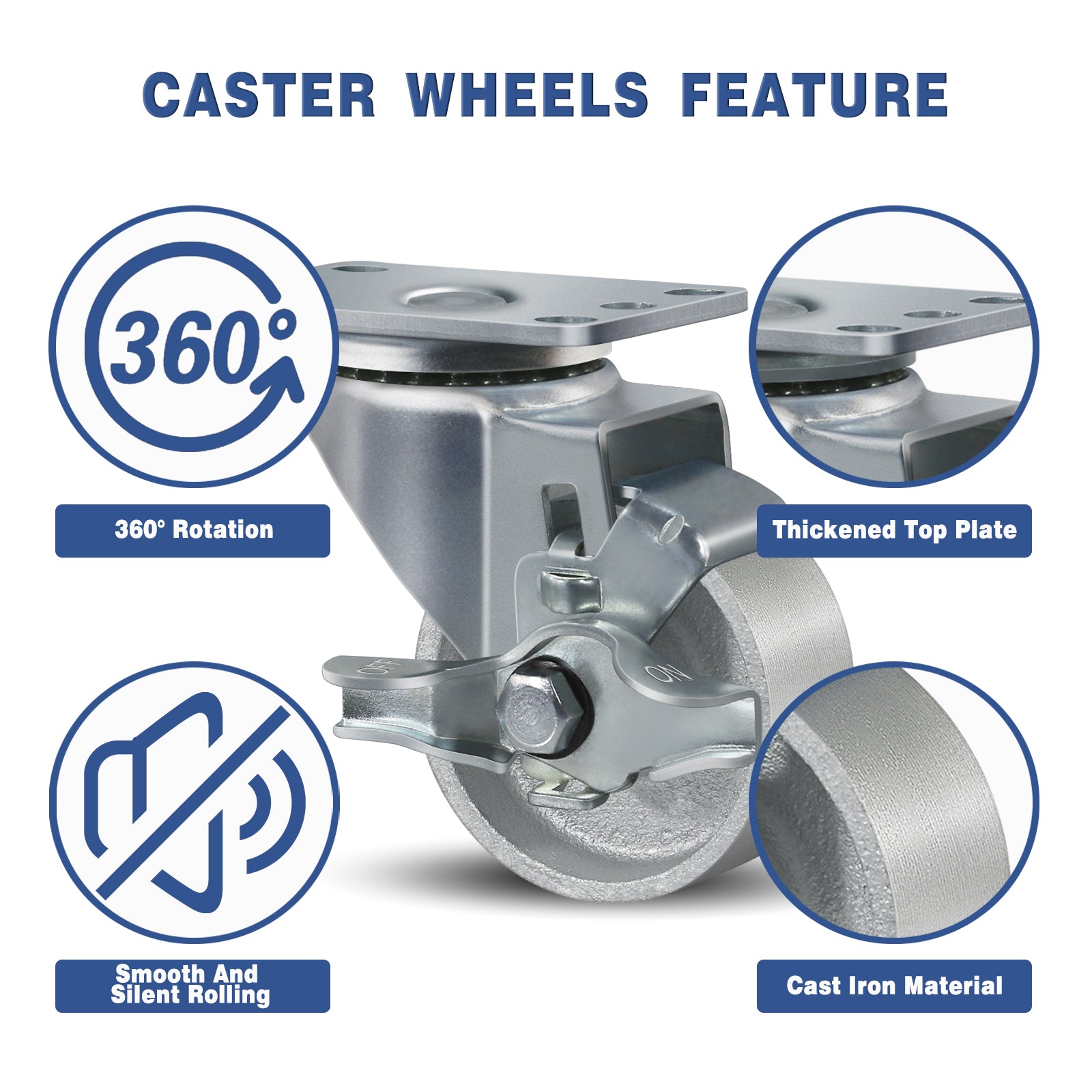 3-5" Caster Wheels Heavy Duty ,Swivel Casters Set of 4, Industrial Plate Casters, Semi Steel Cast Iron Wheels for Furniture,Workbench