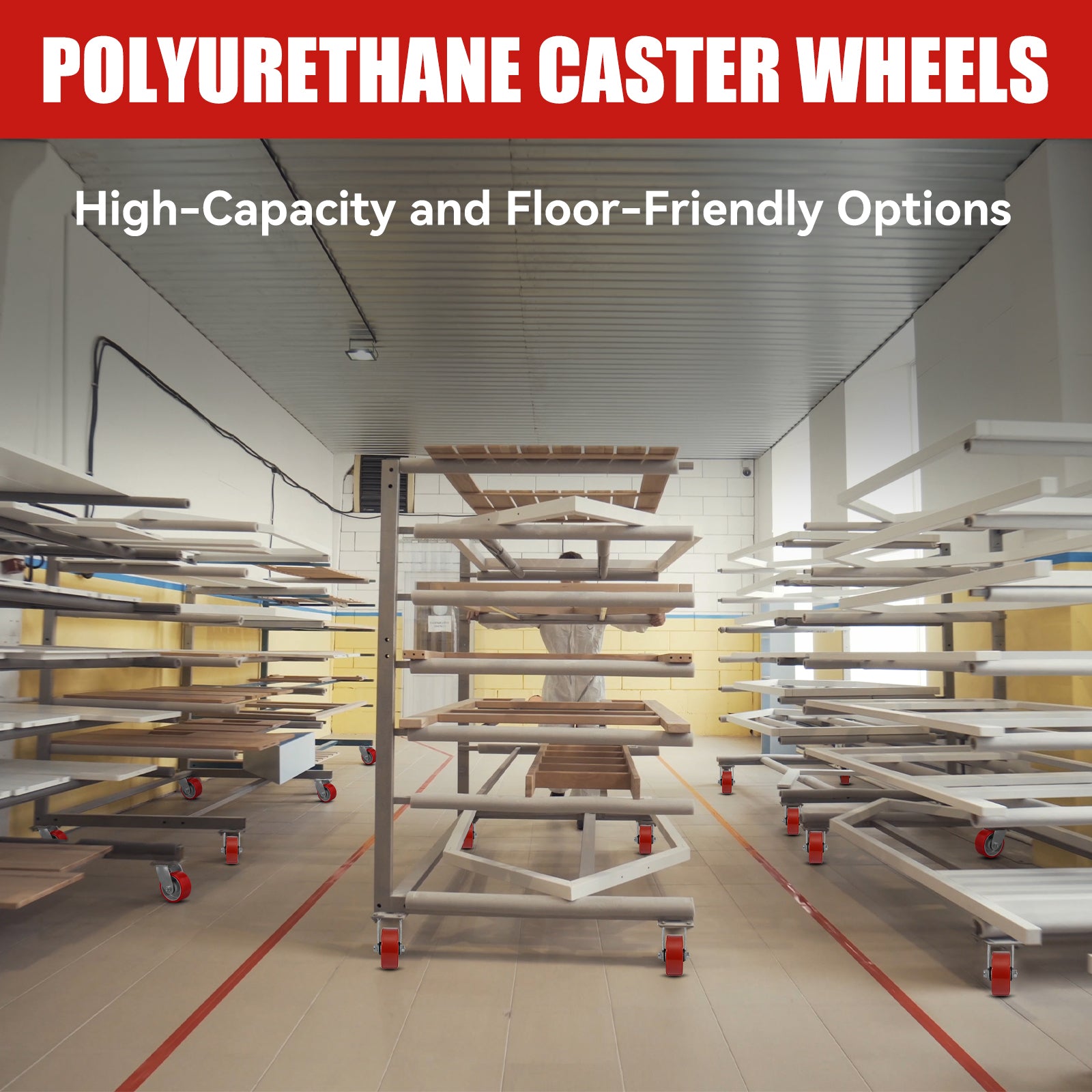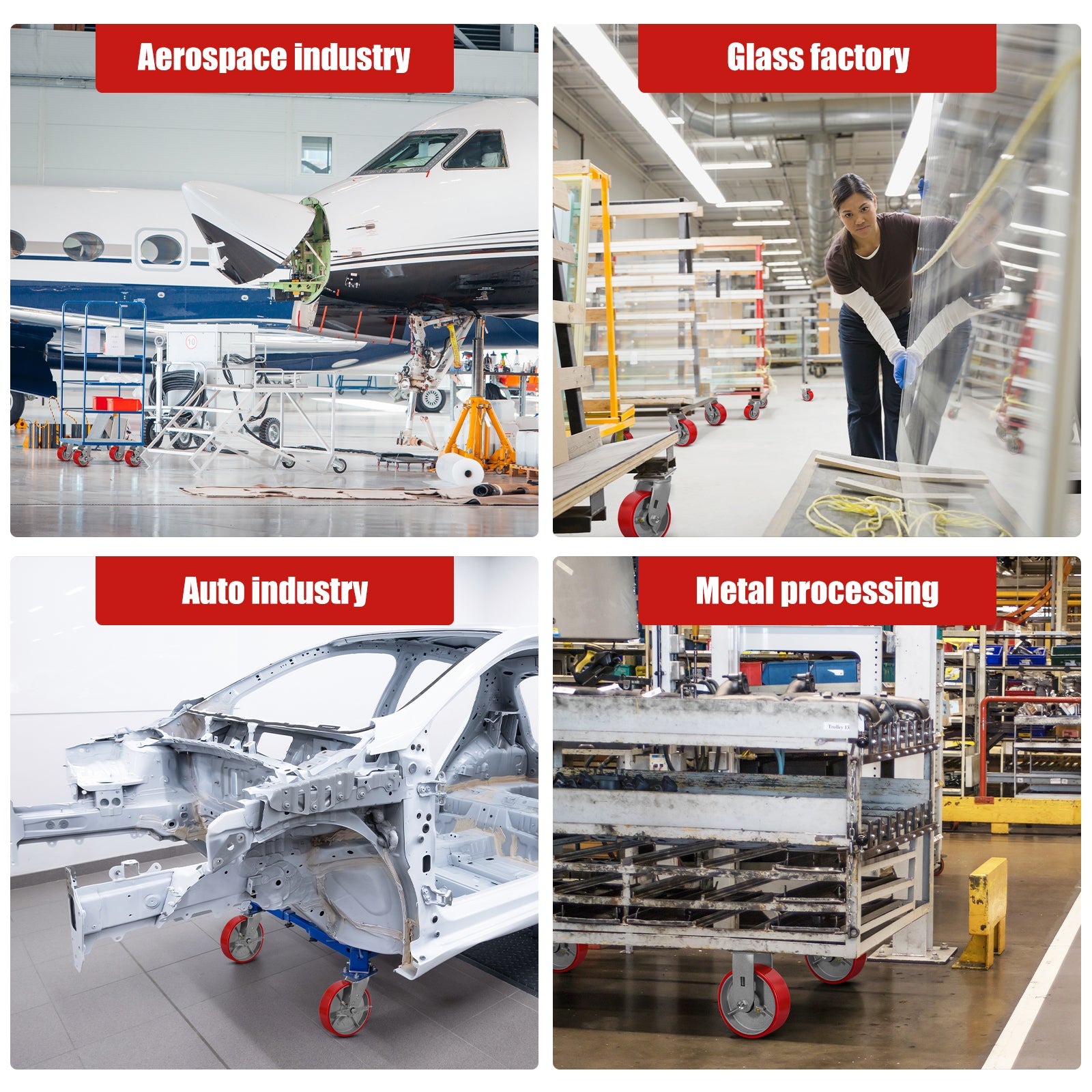 Our casters are versatile and easy to use with workbenches, enabling smooth movement with little effort. They are suitable for both industrial and residential uses, including wood storage racks, furniture, wheelbarrows, rolling workboxes, cabinets, toolboxes, and gate fence wheels. These casters are ideal for various settings such as industrial environments, warehouses, hotels, institutions, food services, food processing, and retail displays.