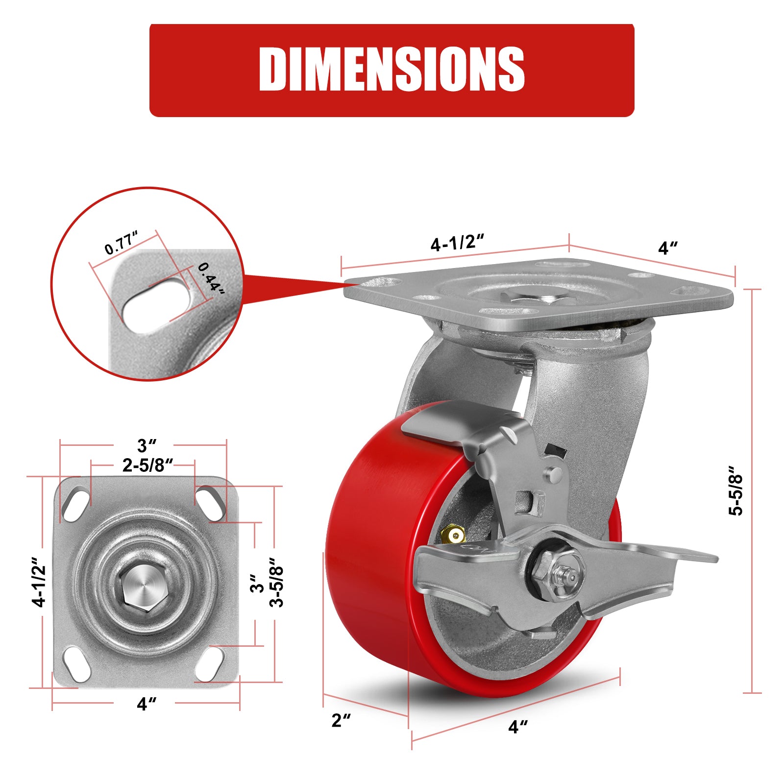 Mold on Polyurethane Cast Iron Core Wheel Heavy Duty Caster Red